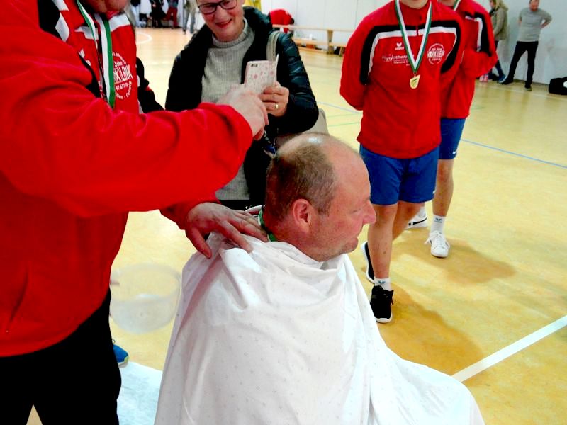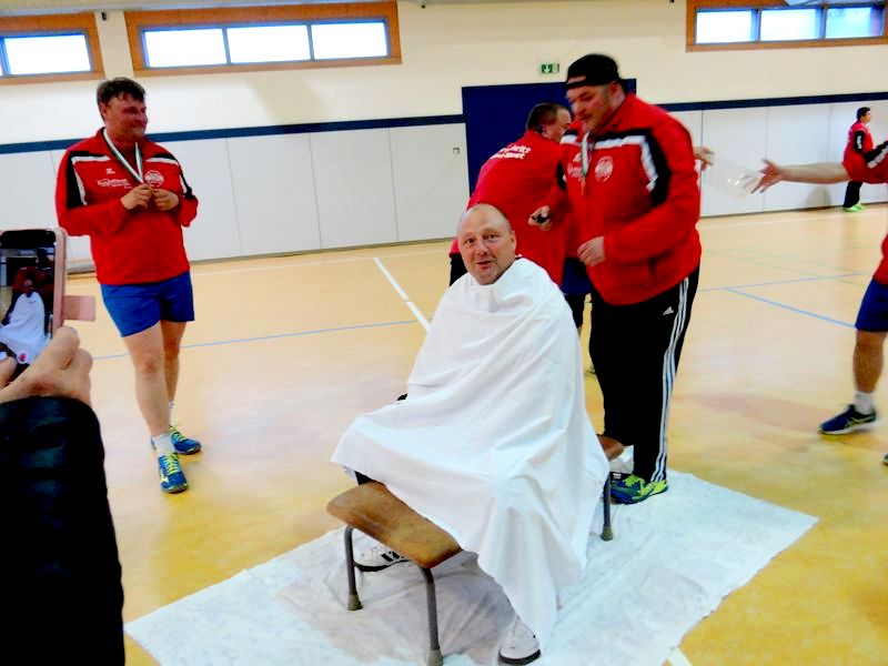 Die Meißner Athleten machten die Elbsporthalle zum Frisiersalon. Trainer Mario Schindler bekam eine Glatze verpasst!!