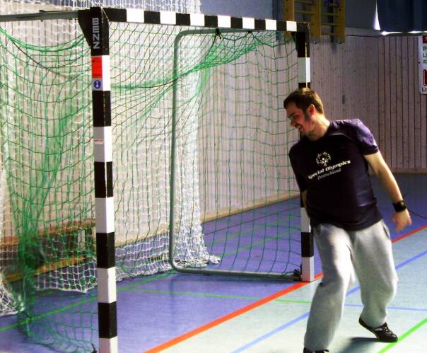 Einer unserer Neuen macht auch gleich Schlagzeilen! Der aus dem Fußballbereich kommende Andreas Sperling fiel durch seine gute Leistung als Torhüter auf. In einem bundesweiten Sichtungsturnier in Mechterstädt bei Eisenach unter Leitung von Erik Hogreve (ehemaliger Spieler bei Flensburg Handewitt) und Carsten Schenk (früher beim THSV Eisenach aktiv), machte unser Torwarttalent auf sich aufmerksam und überzeugte. Vom 2. bis 11. Oktober finden in Shanghai die Wettkämpfe der Special Olympics statt. In der chinesischen Metropole wird auch ein RHV-Handballer um eine Medaille kämpfen. Der 25 jährige Andreas gehört zum Aufgebot der Deutschlandauswahl im Handball, das für die Sommer-Weltspiele nominiert wurde.Daraufhin haben wir nun ein spezielles Torwarttraining angesetzt. Bernd nimmt unser Torwarttalent unter seine persönliche Fittiche.. Beinarbeit, Beinarbeit und nochmals Beinarbeit ist angesagt! Wir überlegen, ob eine Zusatztrainingseinheit in einer Männermannschaft möglich ist. Es ist ja auch eine Verpflichtung für Andreas unsere Farben würdig zu vertreten. Motiviert ist er alle mal.