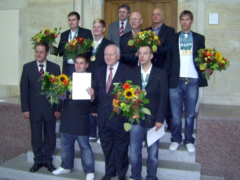 Das Staatsministerium Sachsen lud alle sächsischen Olympiateilnehmer zu einem Ehrenempfang ein. Auch unser Andreas wurde mit seinen Teamkameraden aus Delitzsch eingeladen. Staatsminister Horst Milbrath und SODiS Vorsitzender Holger Bayn hielten die Reden.