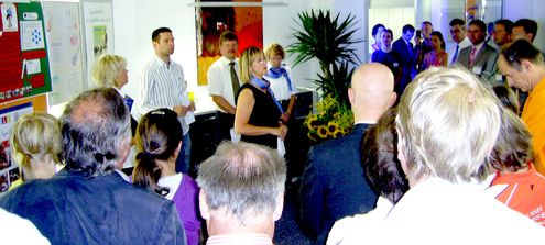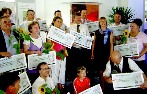 AllePreisträger präsentieren ihre Schecks