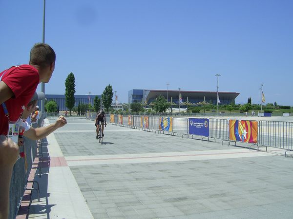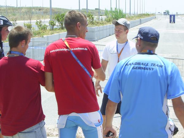 Huete sind wir bei den Radfahrern. Als wir ankommen ist der Dresdner Daniel Naumann gerade im Enspurt. Er holt auf der Zielgeraden, in einem tollen Endspurt gegen einen Niederländer, Gold