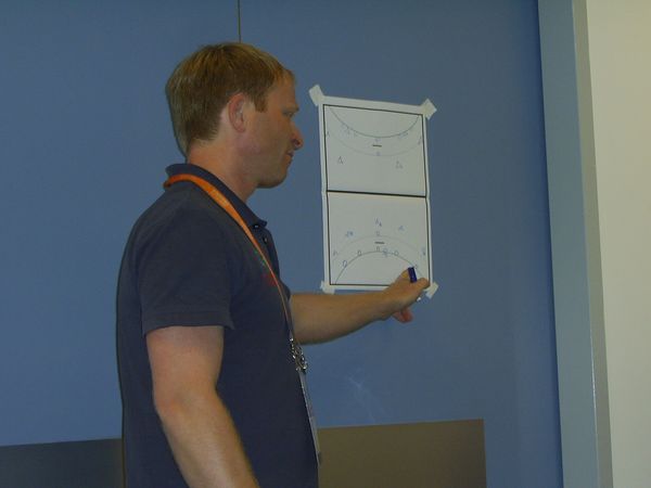 Eine reichliche Stunde vor Spielbeginn treffen wir in der Fencing Hall II ein. Somit war der Grundstein für eine optimale Vorbereitung gegeben. Es war reichlich Zeit für das Trainergespann, die Spieler auf die Begegnung vorzubereiten. Die aufkommende Nervosität wurde durch einigen Witzeleien niedrig gehalten. Zum Aufwärmprogramm war dann keine Zeit mehr sich zu sehr mit dem Spiel zu beschäftigen. Konzentriert legten die Jungs los. Der Zeitrahmen passte. Ronny Weber war aus Glauchau angereist, um unser Team zu unterstützen. Wir schafften es sogar, ihn auf unsere Wechselbank zu platzieren.