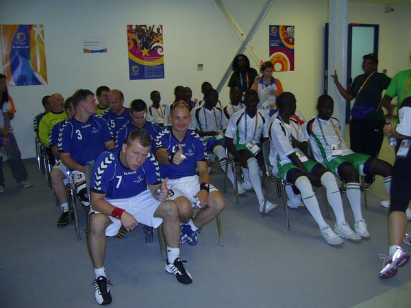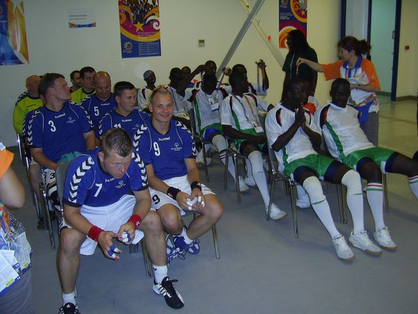 Nun galt es die Zeit bis zur nächsten Begegnung zu überbrücken. Relaxen und entspannen war angesagt. Leichte Snacks sorgten für das auffüllen der Akkus. 14:00 Uhr soll der Anwurf zum Spiel gegen Kenia erfolgen. Die schlanken und hochgewachsenen Handballer aus Afrika waren auch schon in Shanghai ein erfogreiches Team; gewannen sie doch dort Silber! Wir haben sie schon in anderen Spielen beobachtet und festgestellt, daß es schnelle wendige Spieler sind, die auf uns zukommen werden.