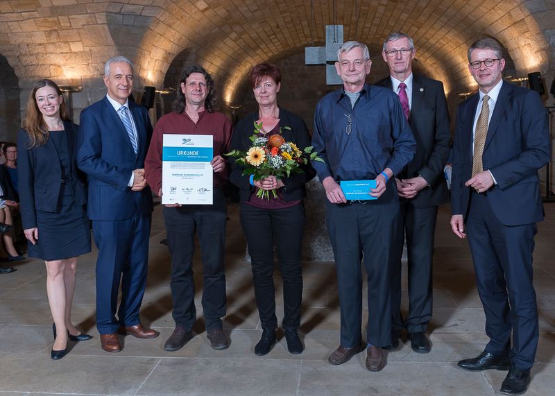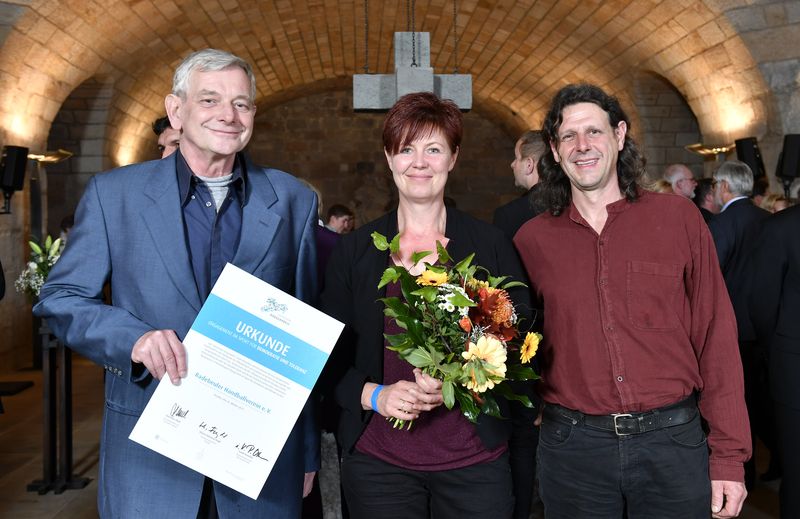 Bernd Hartmann, Andrea Panhans und Ansgar Wodak bei der Preisverleihung in der Unterkirche der Frauenkirche.