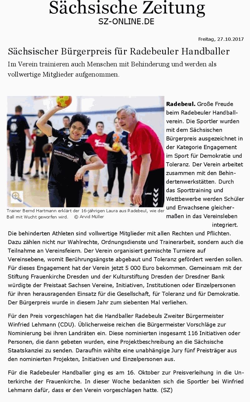 Sächsischer Bürgerpreis für Radebeuler Handballer