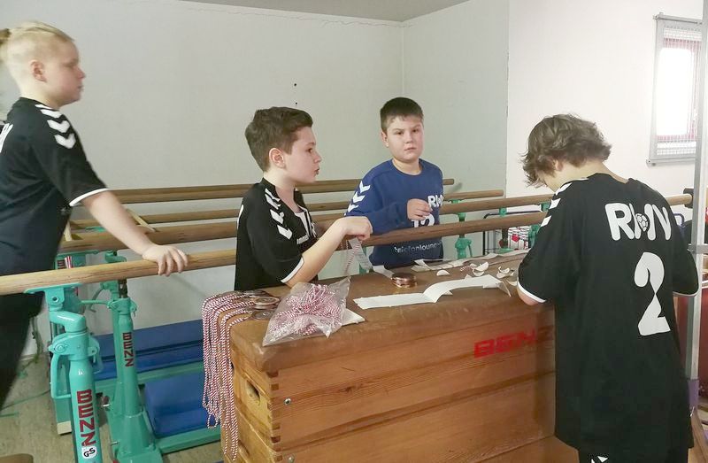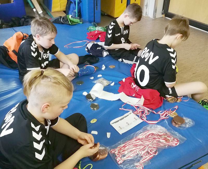 Eine besondere Aufgabe ist die Medaillen fertig zu stellen. Das ging richtig flott. Viele Hände, schnelles Ende.