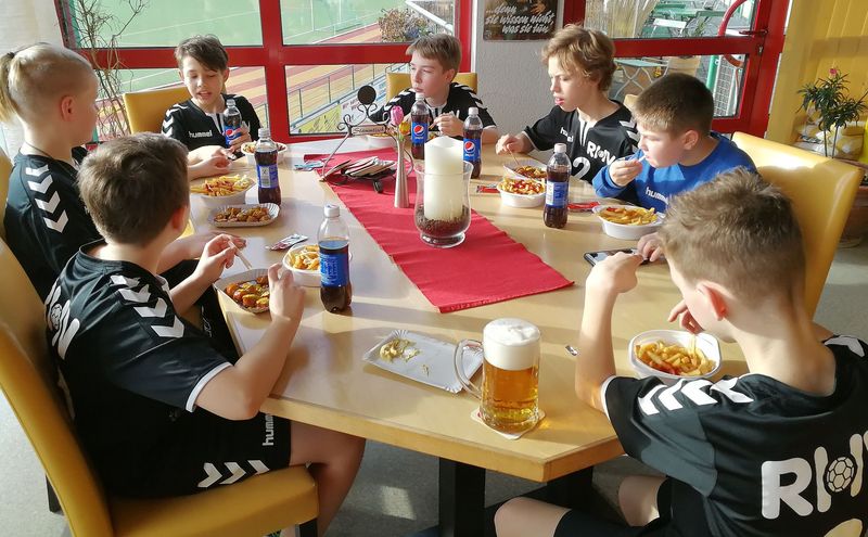 Als Belohnung gab es für alle lecker Pommes und für Trainer Thomas Müller ein "Männergetränk".