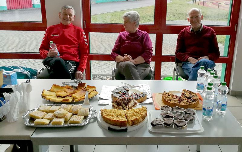 Kleines Plauderstündchen zwischen Bernd und den Müllers. Unser Damenteam war wiederum der zuverlässliche Betreuer des Kuchenbuffet.