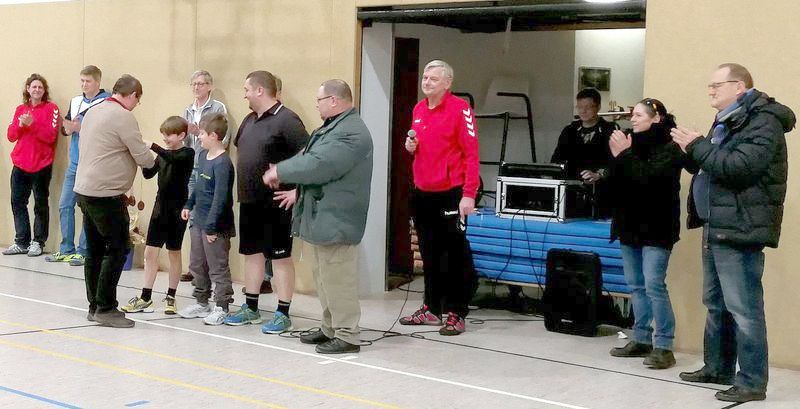 -die 4 Schiedsrichter (Lukas, Titus, Bernd Hädrich und Thomas Schmidt) bekommen eine Erinnerungsmedaille des Turniers überreicht.