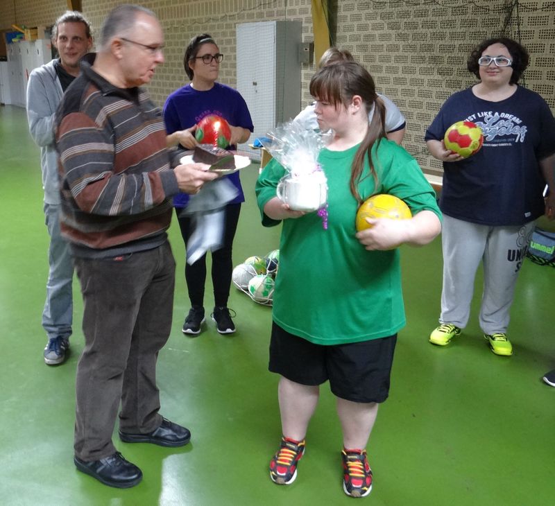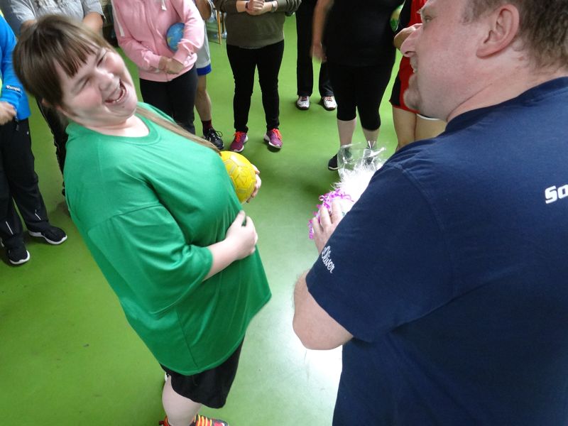 Faustdicke Überraschung! Alle wissen von Mandys Geburtstag. Ronny und Karl sind bestens vorbereitet. Sogar einen Geburtstagskuchen mit Kerze gibt es. Nach dem gemeinsamen Aufwärmen bekam Andreas gleich die Gelegenheit ein Torwarttraining durchzuführen. Bernd übernahm auch noch eine Trainingseinheit Torwurf. Das war für beide schon ihr Hauptpart am WE. Schließlich werden Jutta, Sandra und Ronny das Team nach Abu Dhabi führen und es ist wichtig, das sie die Ansprechpartner für die Mädels sind. Natürlich unterstützen beide das Team in Gesprächen weiter.