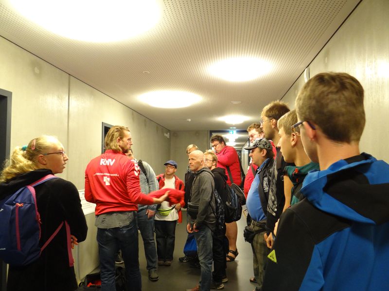 Ein Teamfoto vor der Halle. Vorfreude pur.