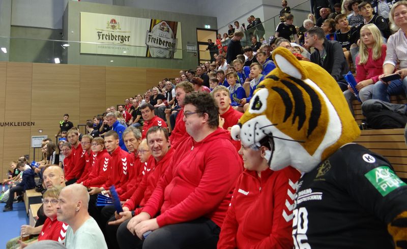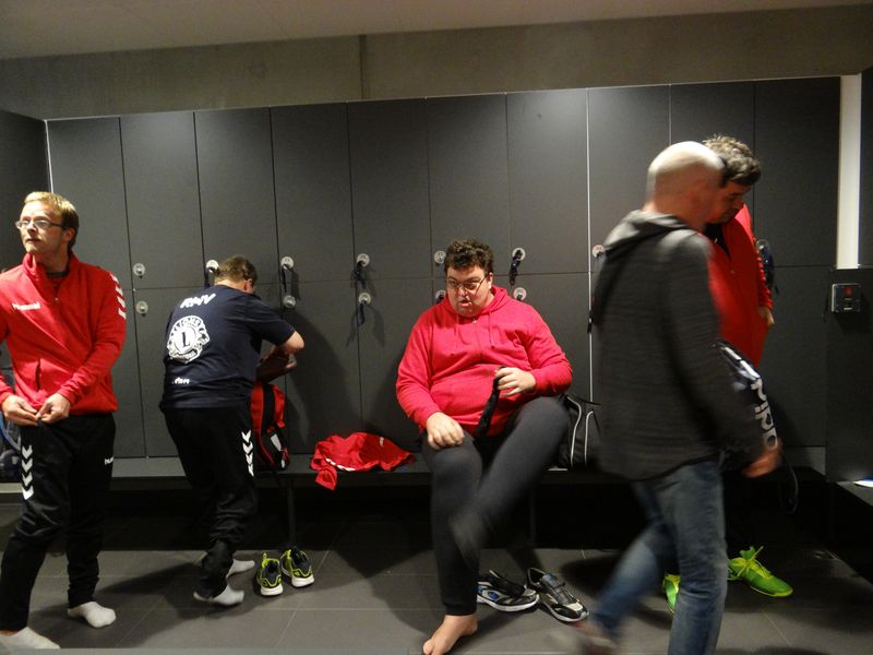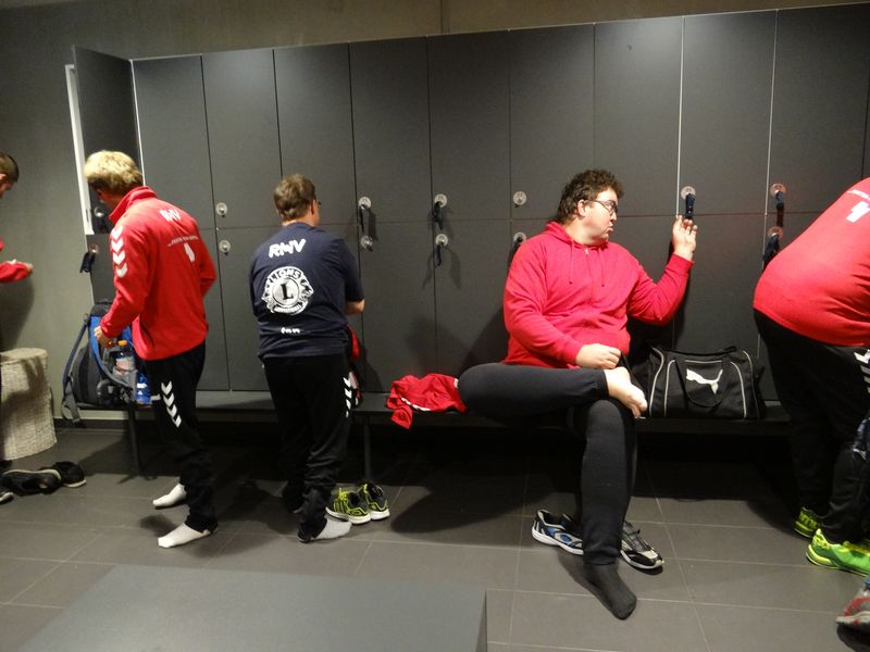 Unser Umkleideraum befindet sich im Gang der Mannschaft HC Elbflorenz 2006. Hier konnten wir schon im Vorfeld erste Kontakte knüpfen.