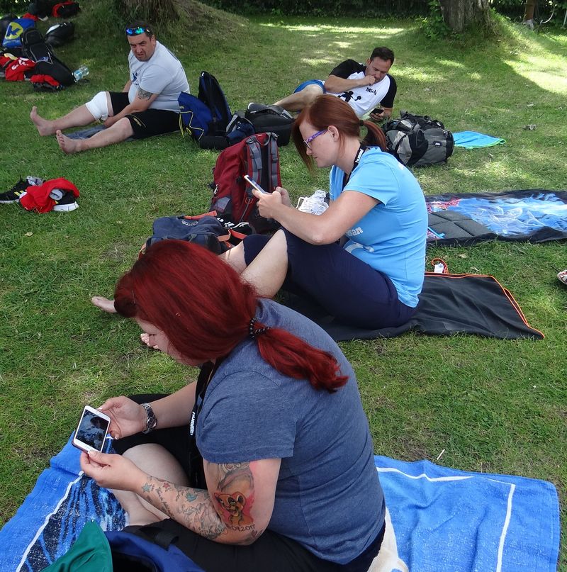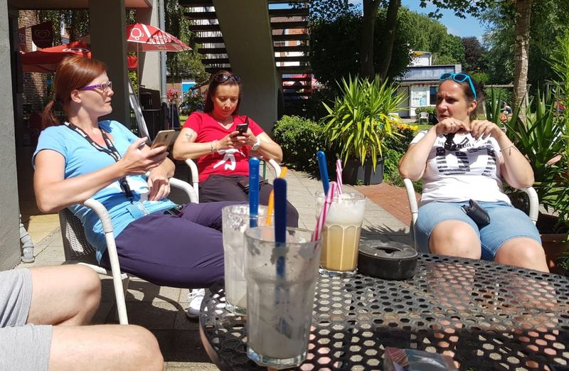 Während die Kinder badeten und Pommes sowie Eis essen, lassen wir es uns gut gehen. Alle sind zufrieden. Was wollen bloß immer die Mädels mit meinen Haaren?