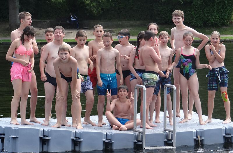 Die Mädchen machen eine kombinierte Stadt/Kanalrundfahrt während Jugend D und SOT lieber das Stadtbad ansteuern. Gegessen wird individuell. Eine gute Wahl. Die Kinder toben sich ausgiebig im Wasser aus.