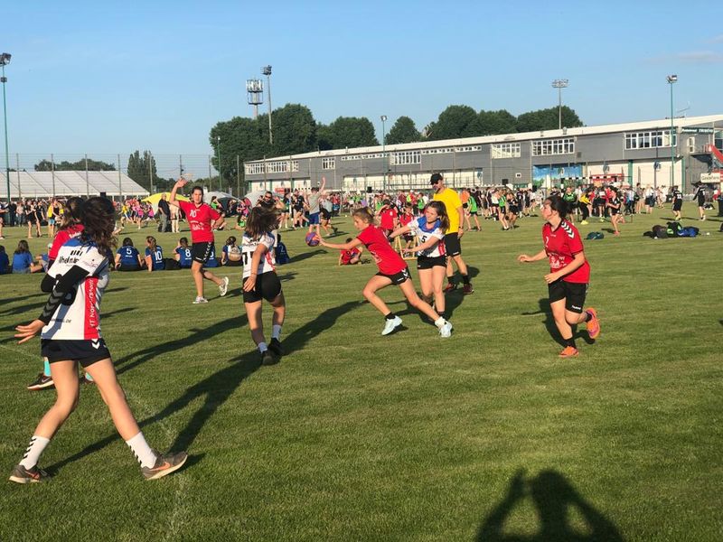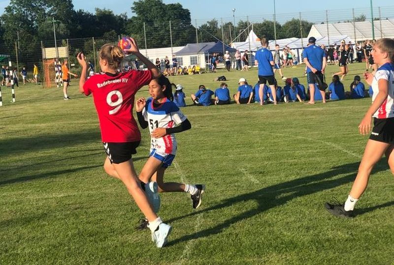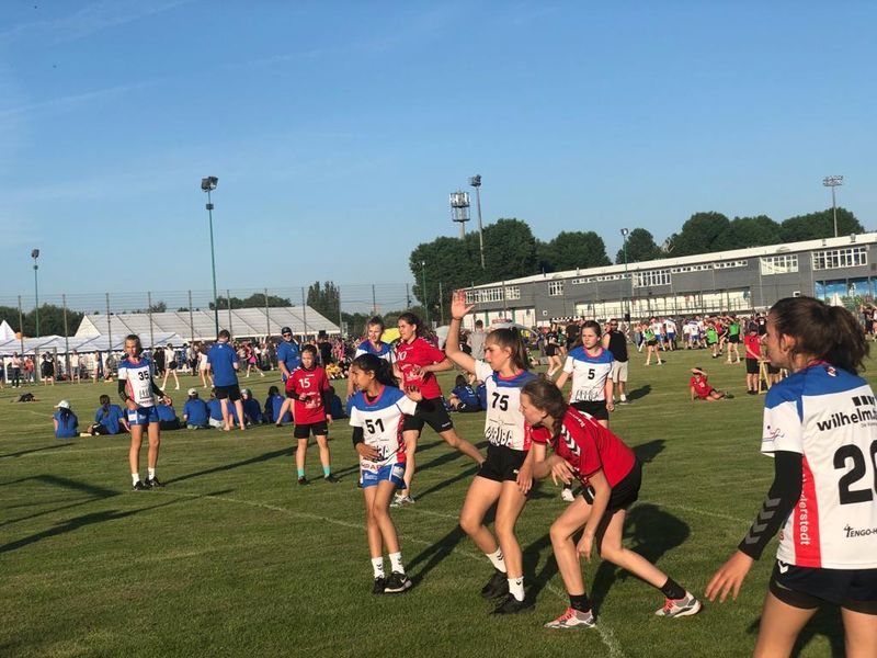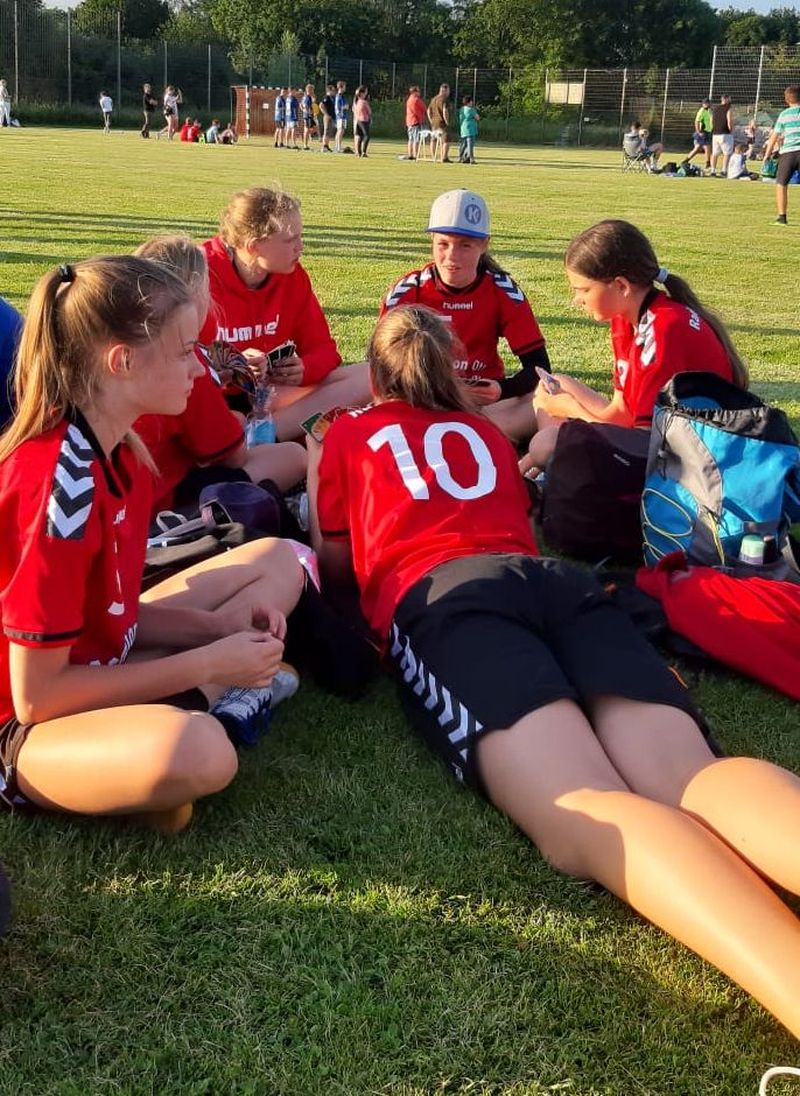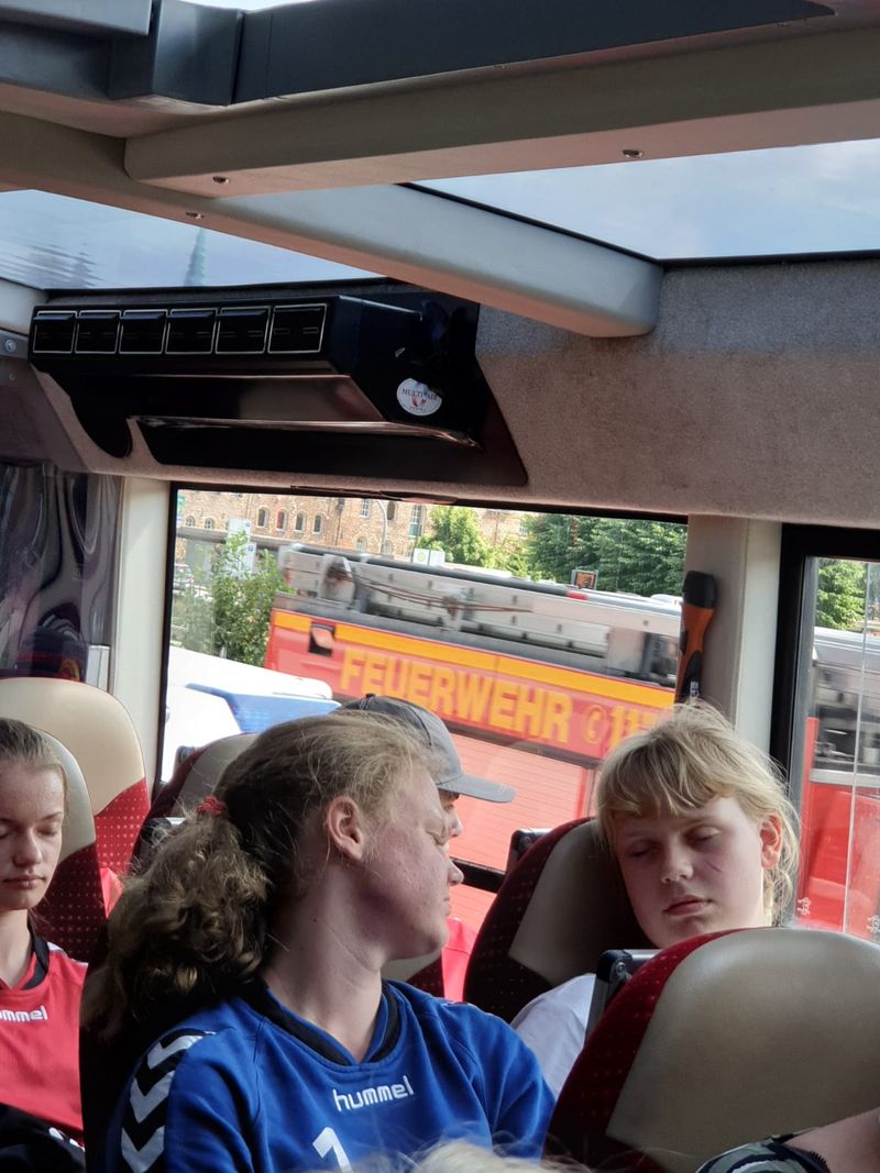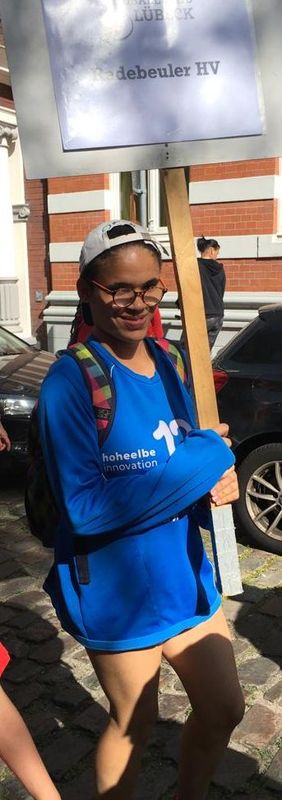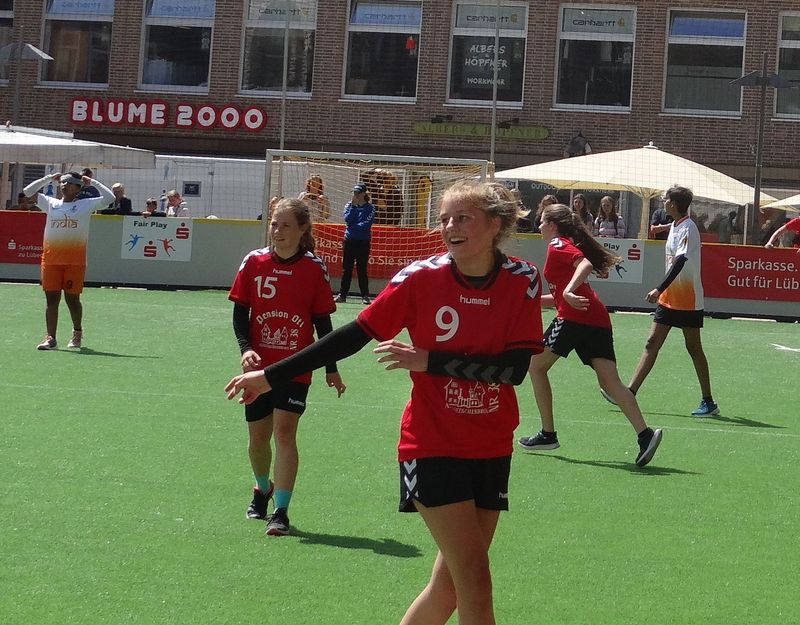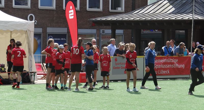 Kurz und bündig werden wir durch eine Athletikgruppe mit wagehalsigen Salti toll unterhalten. Eine kurze Ansprache ging schon in den Aktivitäten der spielbereiten Mannschaften unter. Auch wir müssen uns sputen! - haben unsere Mädchen doch noch zwei Begegnungen zu absolvieren. Toll, ab Freitag Nachmittag waren alle Shuttle Linien vollständig in Betrieb. Problemlos erreichen wir die Spielstätte Lohmühle. Erst mal das Abendbrot wegmampfen. Unsere Mädels sind frisch gestärkte unangenehme Gegner für HT Norderstedt II (10:8) und Lübeck 1876 (12:1). Ein wunderbarer Start mit 6:0 Punkten in das Turnier.