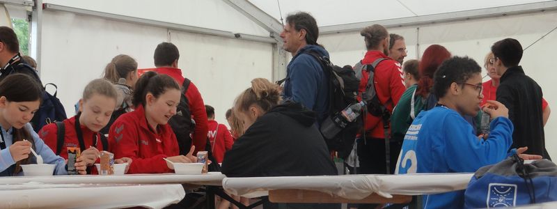 Zufrieden steuern wir gemeinsam das Quartier an. Nun waren entgültig alle Mannschaften angereist. Wir merken es an der total gefüllten Schule. Die Duschen waren hoffnungslos überlastet. Handballer sind hart im nehmen. Was juckt uns das. Mit den guten Ergebnissen im Kopf schlafen unsere Eleven friedlich ein.