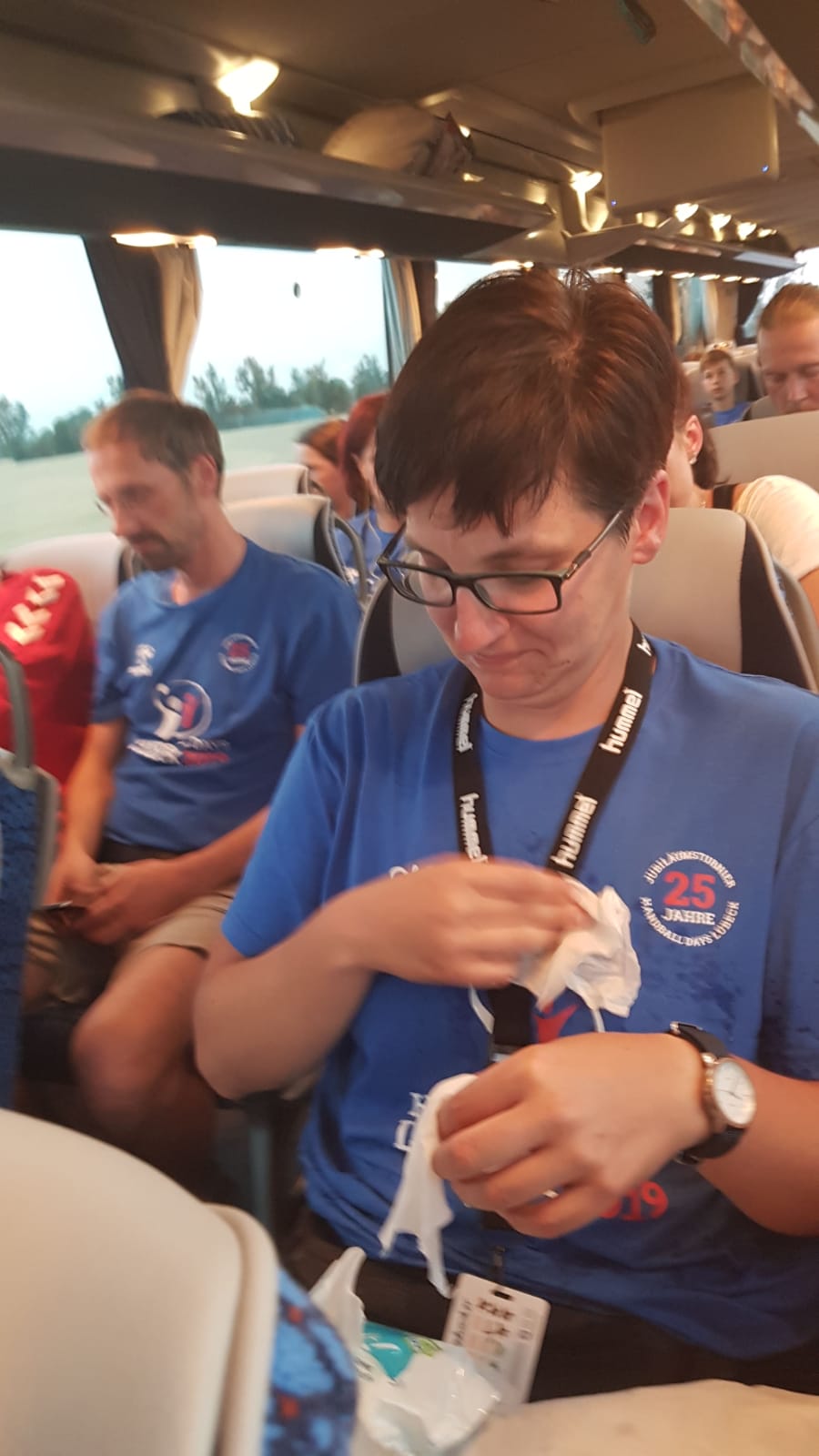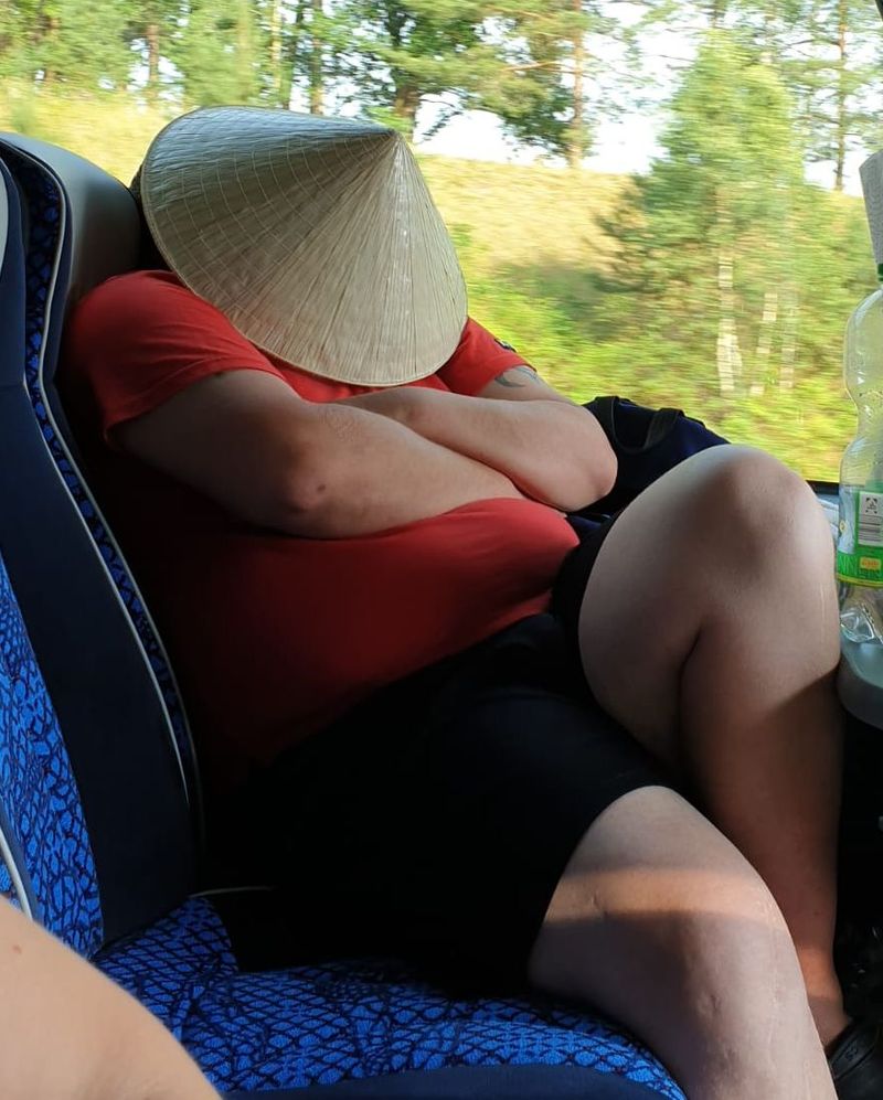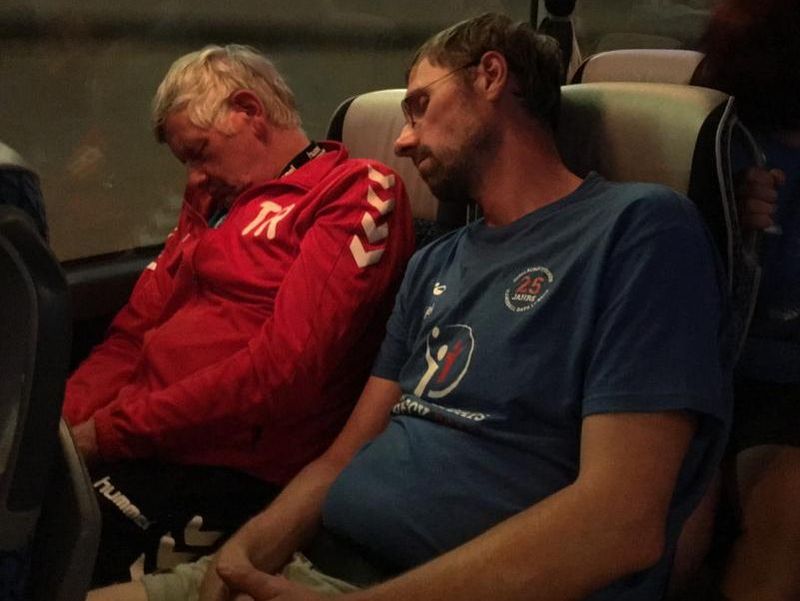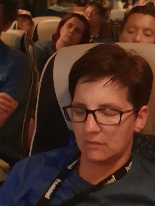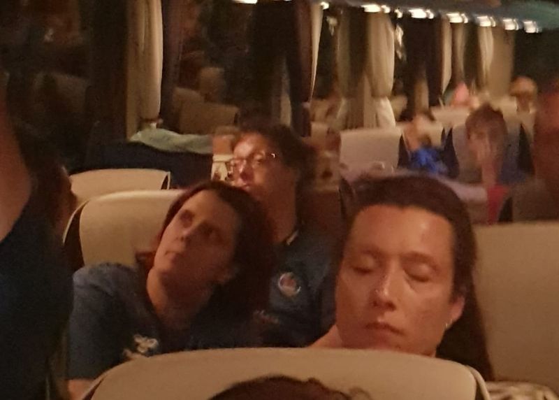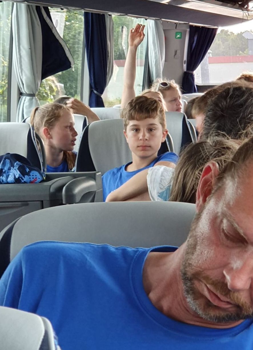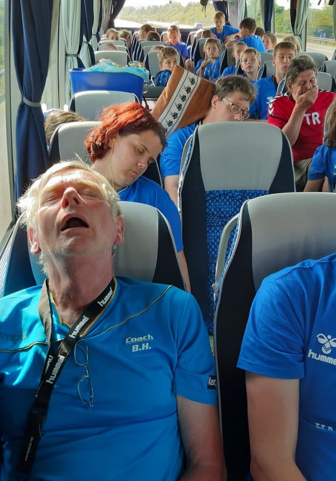 Den Rest der Truppe abholen und dann ab Richtung Heimat. Aber die Vorhänge bleiben weiter Garnitur! Komischerweise gab es zu meinem Vorhang keine Äußerung. Bin wohl zu Alt...Müde Krieger sitzen im Bus...