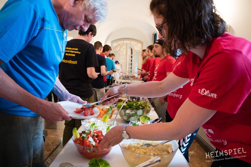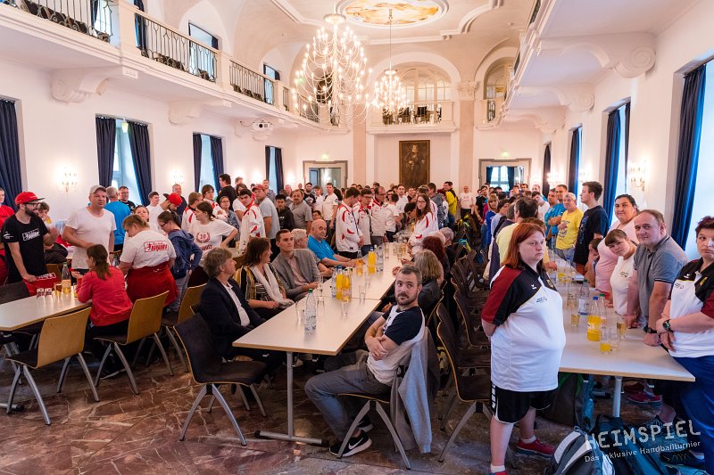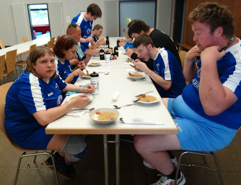 Die beiden Trainer konnten es kaum glauben. Wir gewinnen die ersten beiden Begegnungen. Nie hat es in unserer Geschichte gegen die Diakonie Hephata Schwalmstadt zu einem Sieg gerreicht und nun sogar gleich deutlich mit 9:6! Abends Empfang im Rathaus. Der Bügermeister lädt zum großen Warmbuffet. Es gibt jederzeit Redebedarf zwischen den Coachs. Später lassen sie in gemütlicher Runde den Tag ausklingen. Wann trifft man sich schon? Das kann abendfüllend werden!
