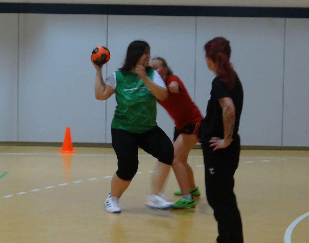Nach dem üblichen Aufwärmen ist heute die Deckungsarbeit und das Kreisspiel im Fokus. Die beiden Trainer Sandra und Ronny sind mit den Fortschritten einigermaßen zufrieden und in der Hoffnung, daß einiges hängenbleibt.