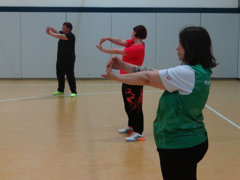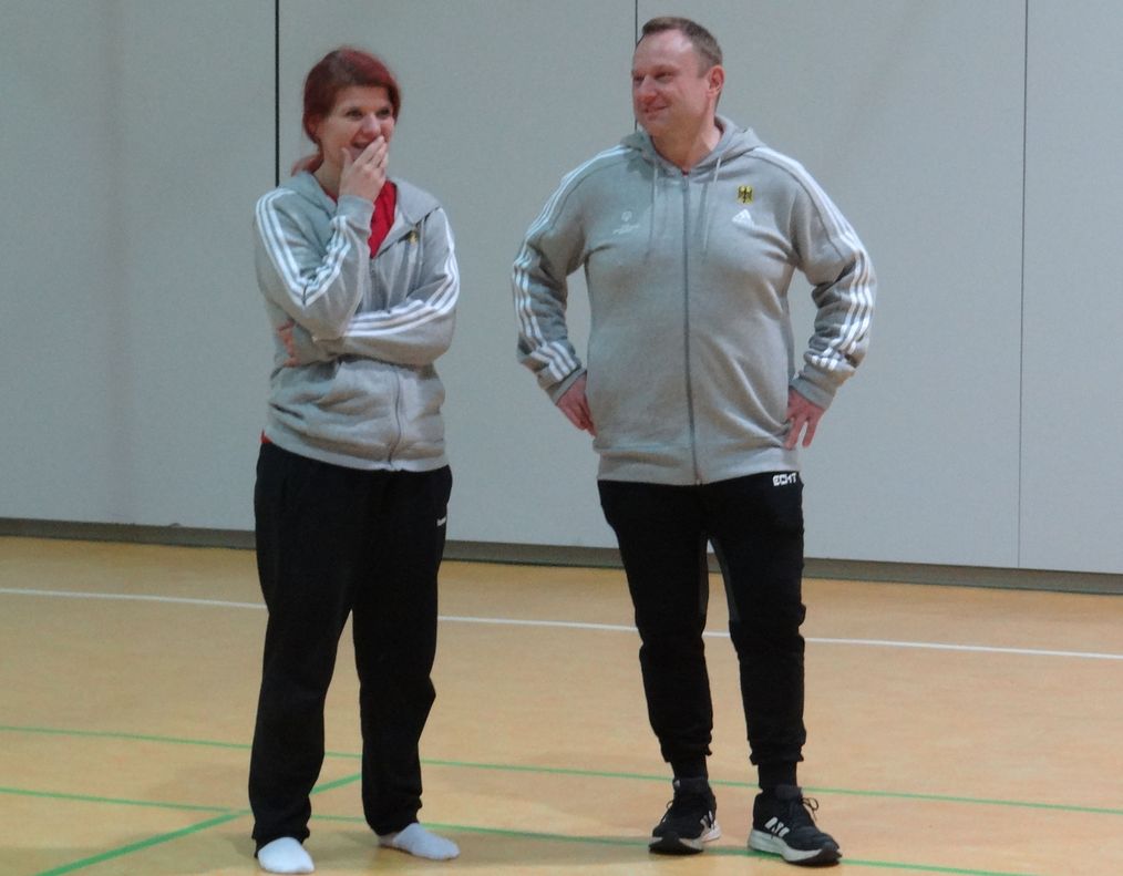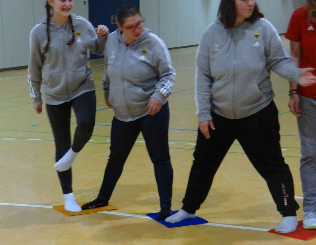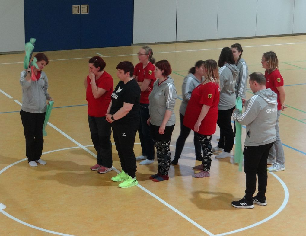 Zum 3. Training sind alle auf Sandra fokussiert. Autogenes Schweißen ist angesagt... ...oder wie das auch immer heißt? Mit Zusammenschweißen hat es doch irgendwie zu tun. Ach ja, jetzt weiß ich es: "autogenes Training" heißt das! Entspannungsübungen. Bei dem zu erwartenden Trubel in Berlin ist das angebracht.