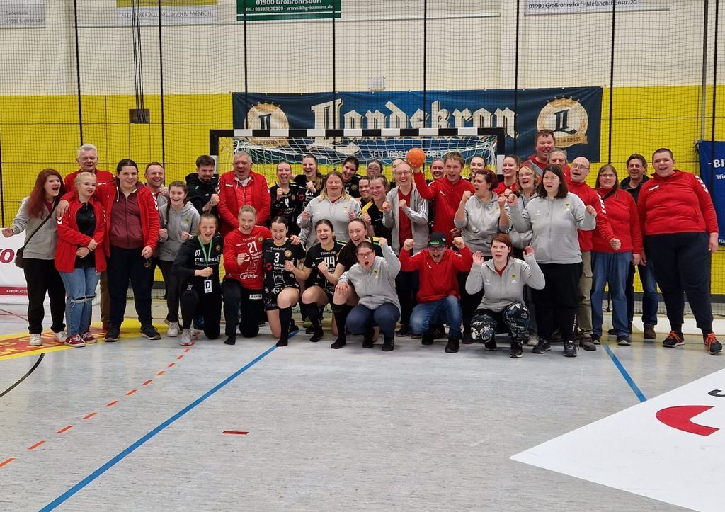 Das spannende Spiel der 2. Bundesliga fesselte uns. Da wurde dynamischer Handball vom Feinsten zelebriert. Zum Schluß behielten die Rödertalbienen, als Tabellenvierter, gegen den Tabellensechsen TuS Lintfort mit 36:30 die Oberhand. Diese "Handballlehrstunde" wurde noch mit einem gemeinsamen Foto abgeschlossen. Es war für alle ein tolles Erlebnis. Vielleicht träumte mancher in der Nacht davon.