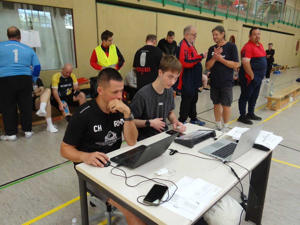 Plötzliche stehen der Vorsitzende Sachsen-Mitte Hardy Richter und Jugendwartin Melanie Friedrich auf der Platte. "Schön, dass ihr auch unser Turnier besucht", Bernd ist erfreut. Aber der Turnierstress reicht wohl noch nicht, sie haben einen besonderen Grund.